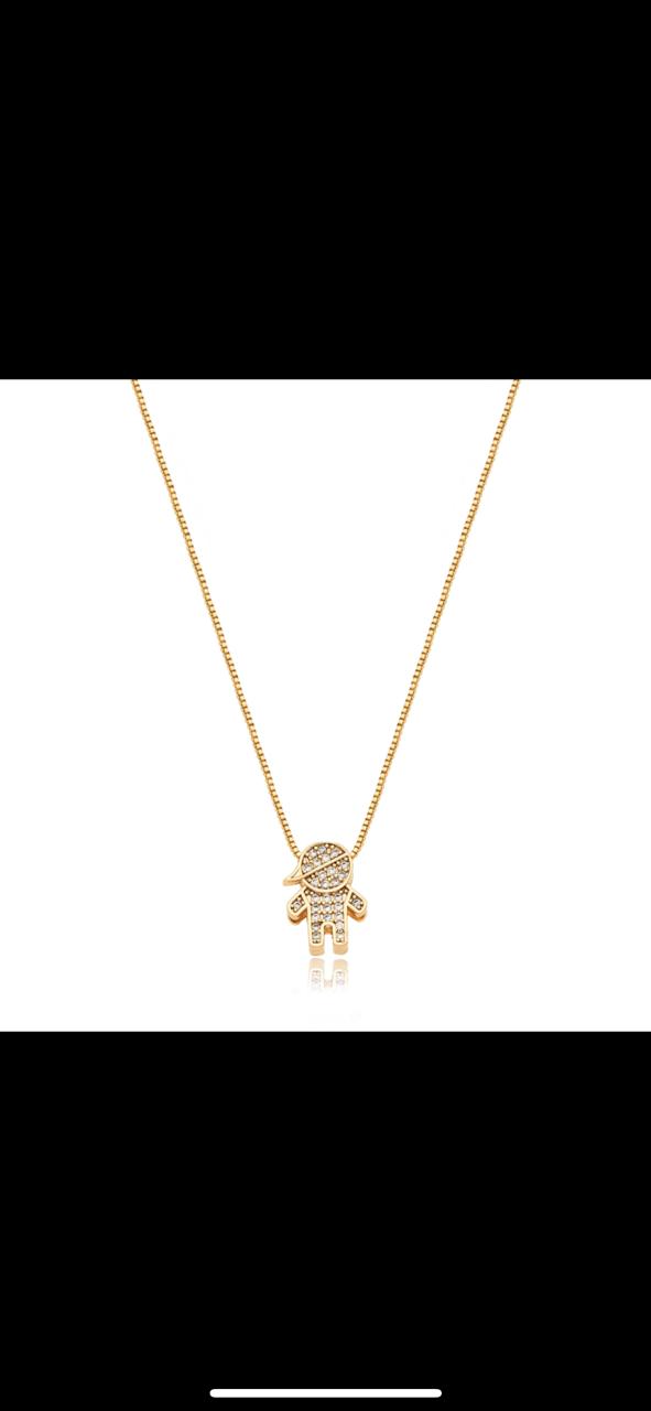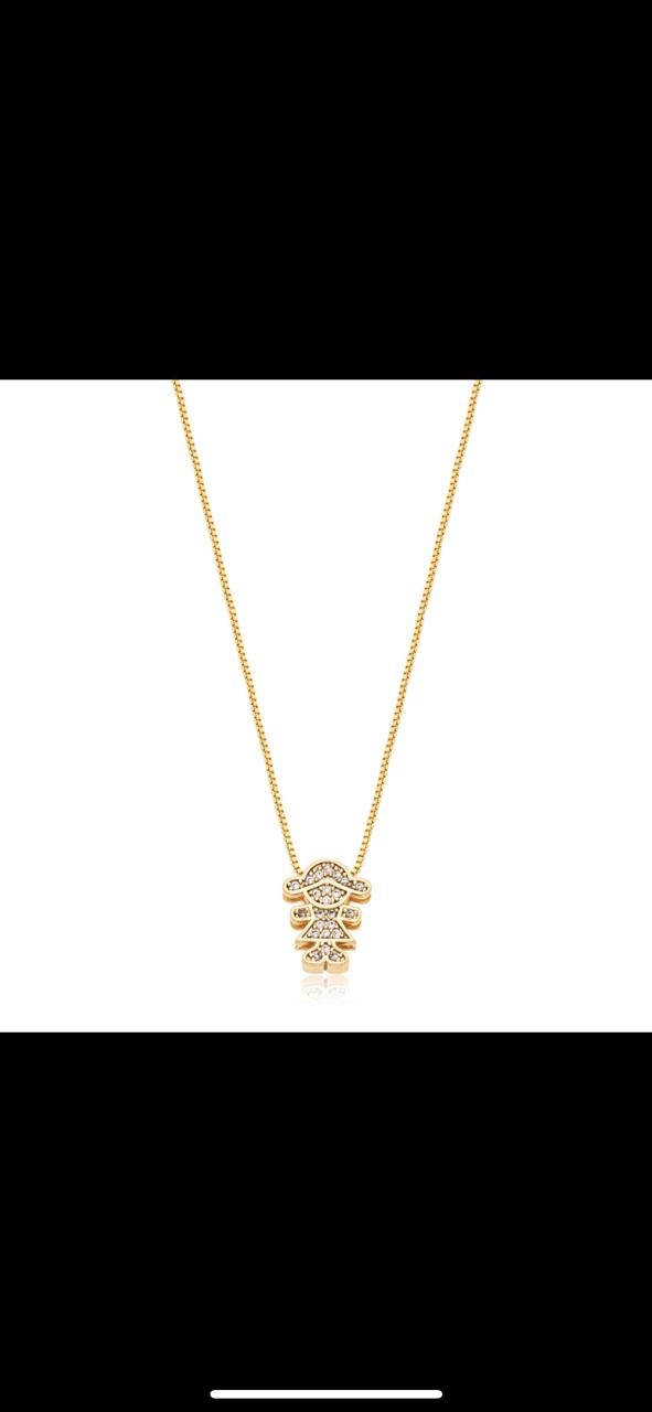 Colar com banho de ouro 18 k e ródio, com pingente de laço minimalista cravejado em microzircônias e fechamento ajustável.