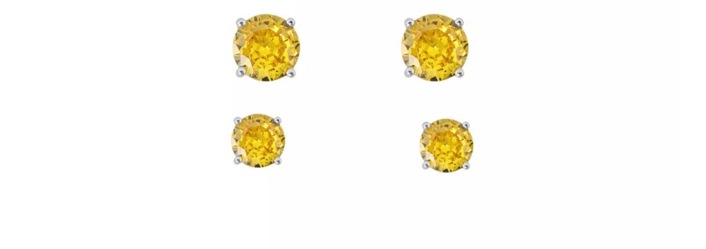 Dupla Redondo Caixa Alta yellow em Prata 925 com banho de ródio é perfeito para quem busca um acessório moderno e sofisticado, com um toque vibrante de cor. O design apresenta três tamanhos de zircônias redondas amarelas – 3,75mm, 4,75mm e 5,75mm – em caixa alta, que realçam o brilho intenso da pedra e trazem destaque à peça.