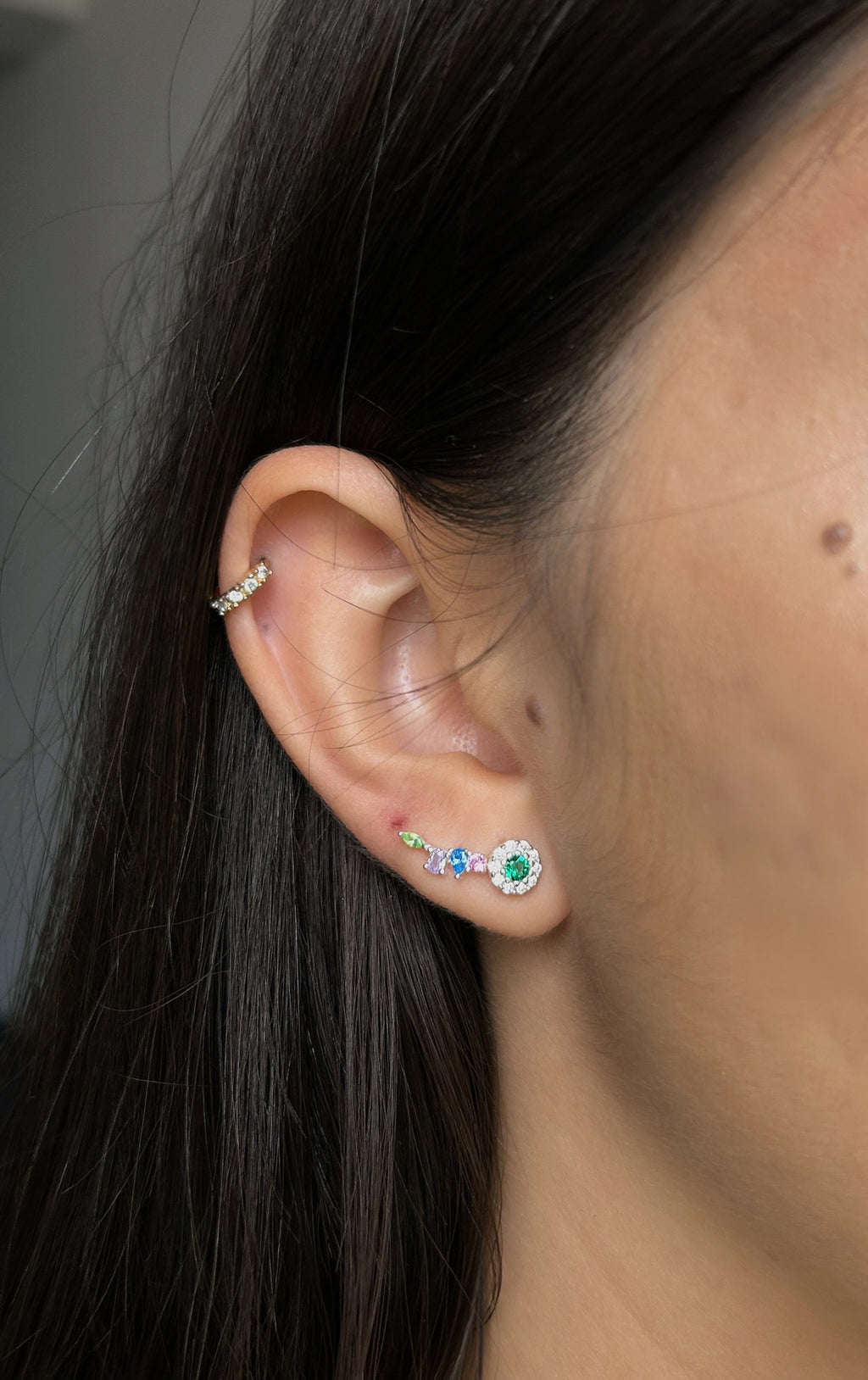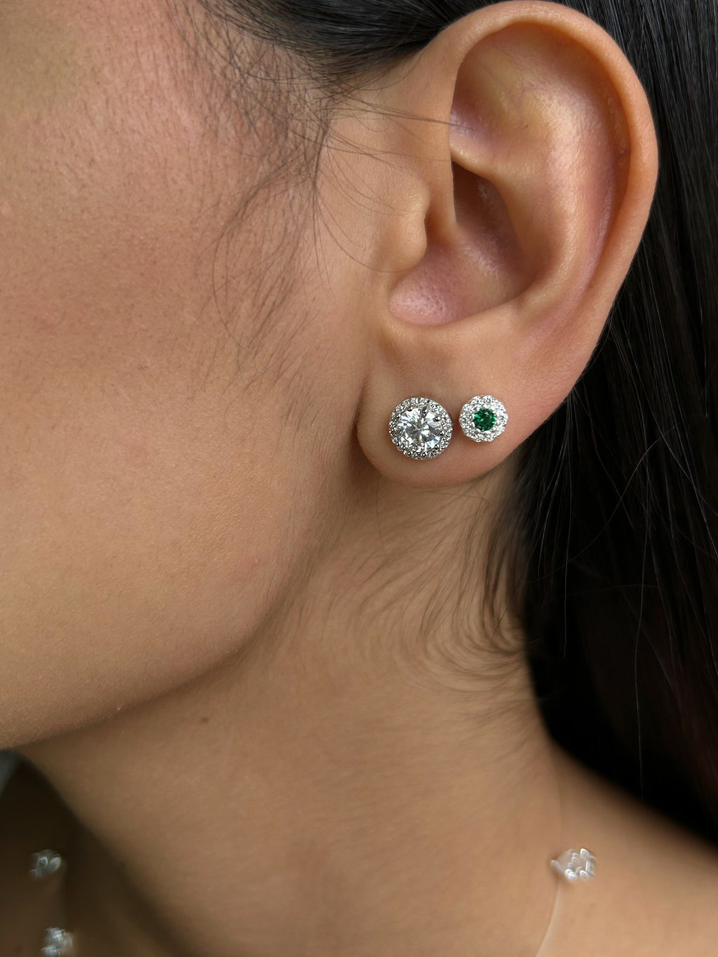 Brinco pontinho de luz redondo esmeralda em prata 925