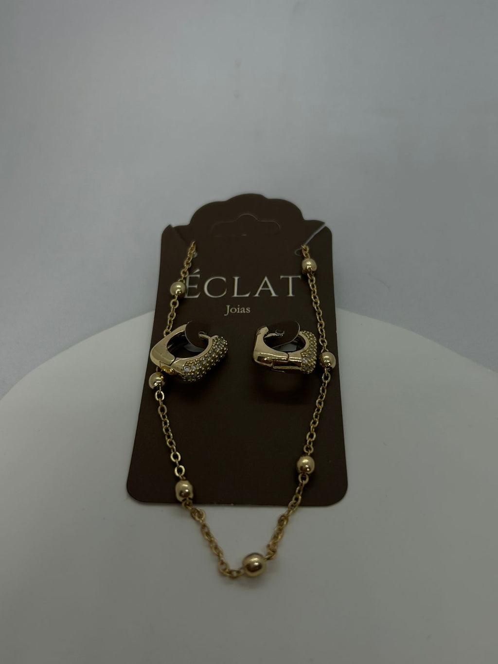 Brinco argola quadrada cravejada zircônias / Colar bolinhas mini